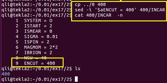 2.1.2)使用sed命令,在INCAR中最后一行加入ENCUT参数,值设置为400