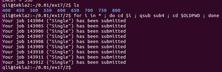 命令:for i in *; do cd $i ; qsub sub4; cd $OLDPWD; done