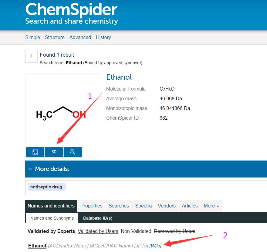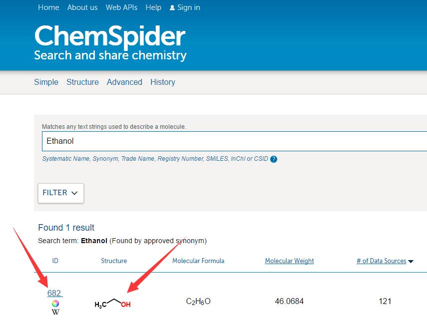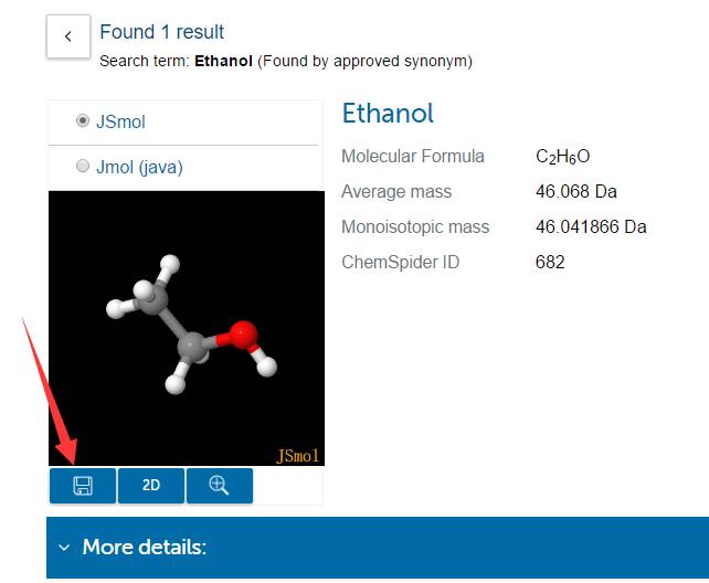 搜索框中输入: 分子名称Ethanol 或者 分子式C2H6O…. 点击搜索,等待结果: