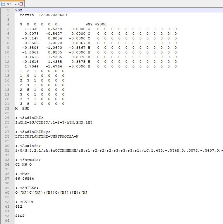 注: 不仅仅是 .mol 文件,很多结构文件都是文本格式,直接打开就是。