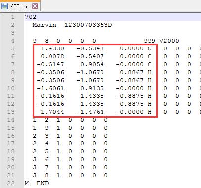 .mol文件也是纯文本,使用Notepad++ 打开如下:看到这么多内容,不要害怕!