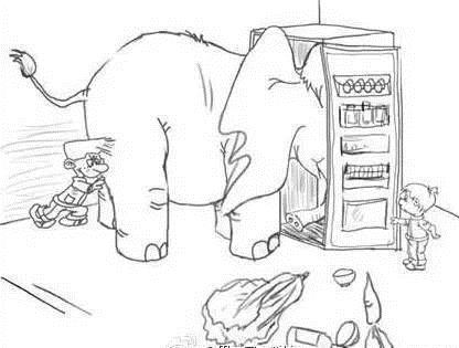 大师兄比较笨,我的第一反应是,这怎么可能? 冰箱那么点,大象那么大。
