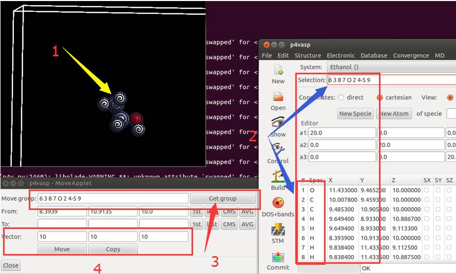 如果你想通过选择原子来实现移动的话(不直接在 Move group 里面输入 C H O),需要按照大师兄说的步骤走:
