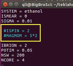 1)乙醇分子是闭壳层的分子,没有磁性,不需要ISPIN=2