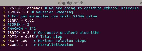 2)气相分子计算,我们要用ISMEAR=0,SIGMA取值要小,SIGMA=0.02;