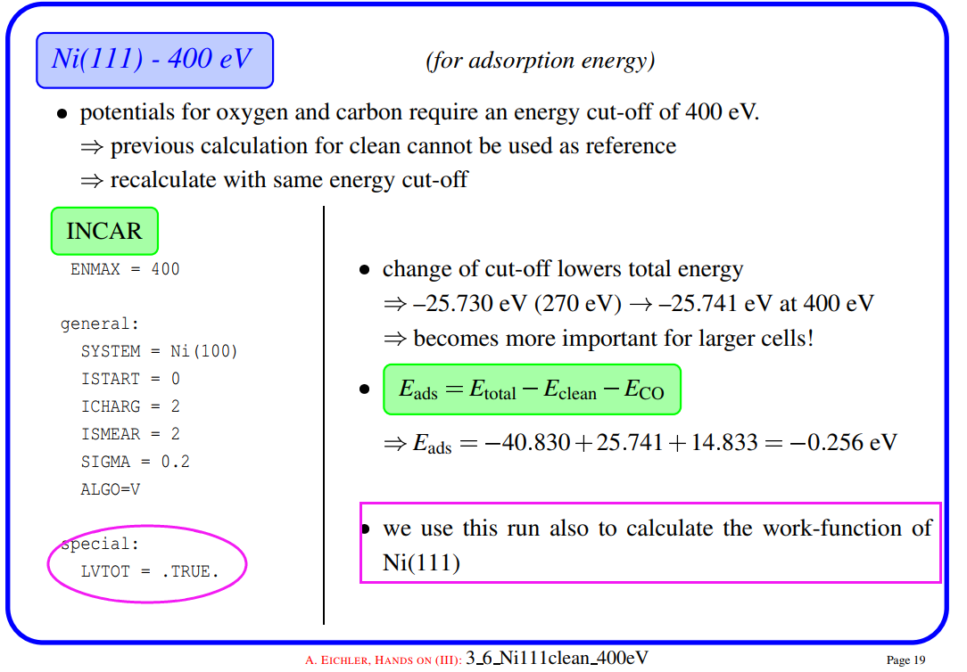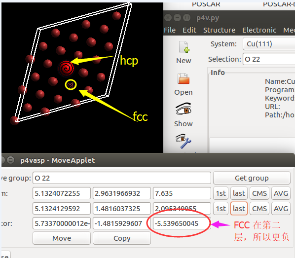 原因在于和C,O原子比起来,H原子很小,它在表面上吸附的时候,会更贴近表面。因此我们把z方向的坐标稍微修改了一下: 减小了 0.3 A。这样做的话可以保证我们的初始结构更具有合理的物理化学意义,从而加快计算的收敛,节约时间。大家在搭建模型的时候,结构合理是必须要考虑的,也是脑子里要时刻思考的事情。
