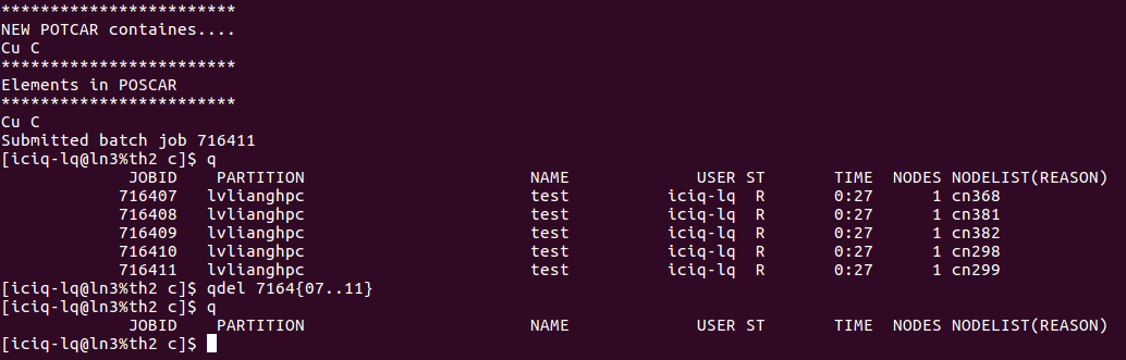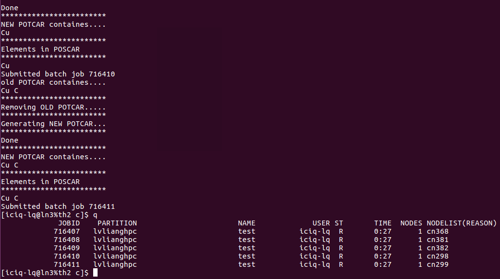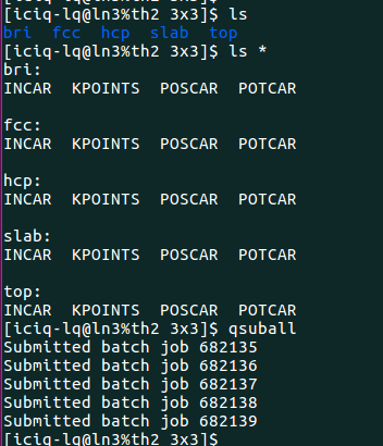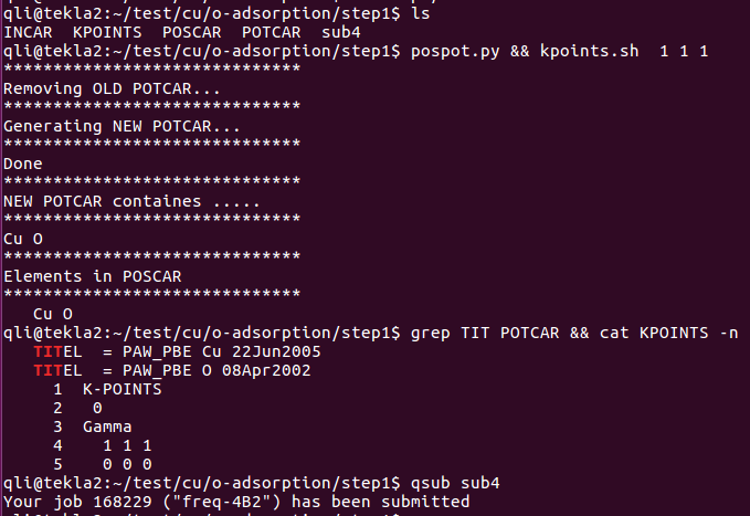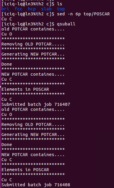 2)完成前面的一步,直接批量提交任务: 提交任务的时候,脚本自动根据POSCAR生成对应的POTCAR.