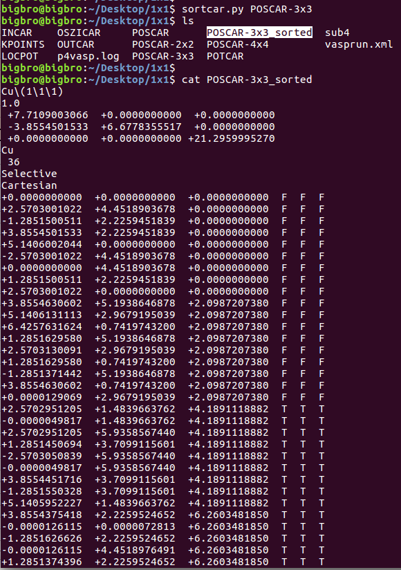 2) 第二次运行的时候,目录下有了一个POTCAR,于是脚本将POTCAR中的元素顺序读出来,然后删掉旧的POTCAR,重复1)的操作,生成新的POTCAR。(大师兄本人的扯淡逻辑,大家可以忽略,脚本文章末尾下载直接使用即可。)