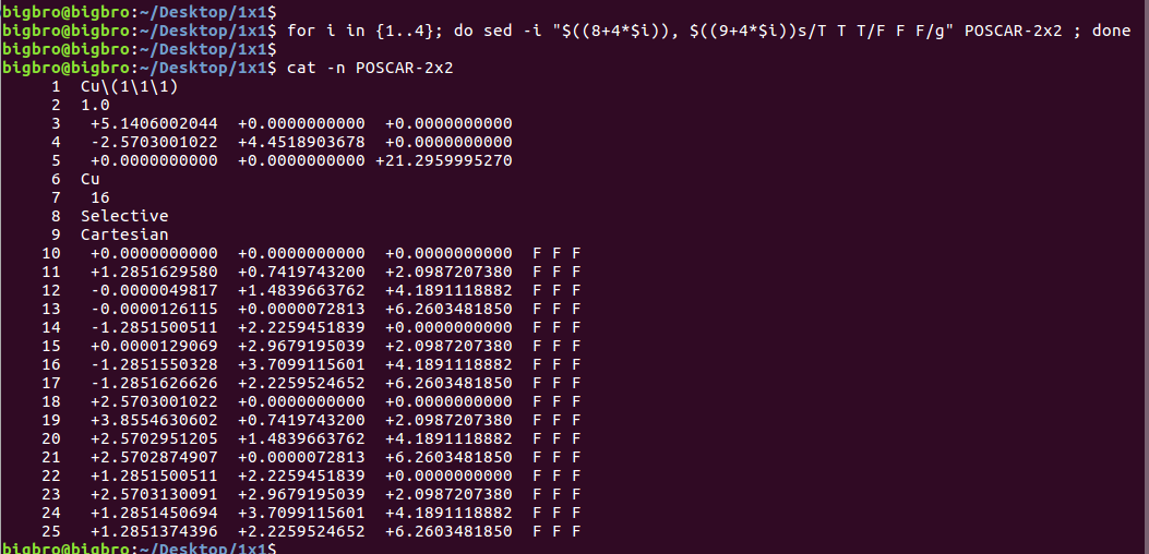 ii)使用sed 批量编辑POSCAR中的元素行。