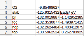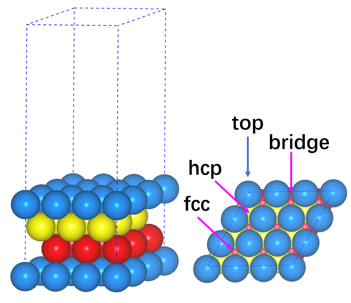 2) 计算C,H,O在Cu(111)表面上,不同位点上的吸附;