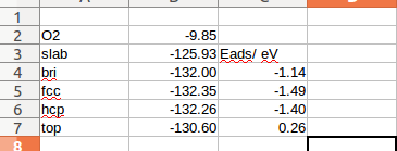 仔细分析不同的地方,你就应该想到: 既然我们有了O吸附相关的计算文件,那么就可以在此模板基础上,快速编辑C的吸附模型,然后进行计算。