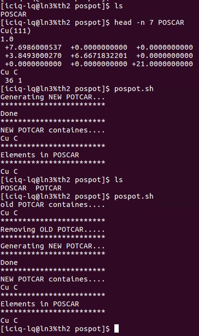 ii) 我很多时候都懒得去看POSCAR中的元素以及顺序,便打算根据POSCAR中的内容生成对应的POTCAR,于是便写了一个脚本:pospot.sh。使用方法如下: