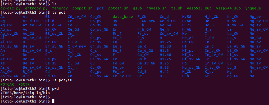2) VASP所有的POTCAR文件在: ~/bin/pot 目录下